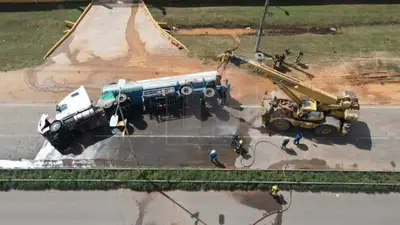 Estas son las impactantes imágenes aéreas de la cisterna volcada llena de alcohol en Santa Cruz