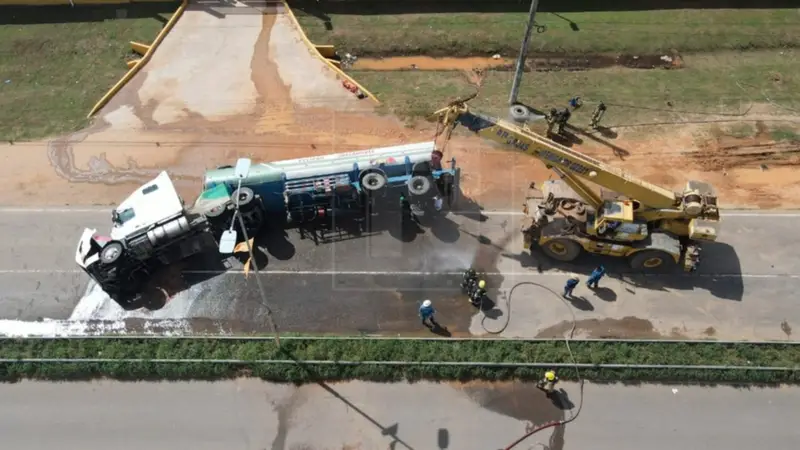 El accidente ocurrió en el kilómetro 25,5 de la carretera Santa Cruz de la Sierra–Warnes. El derrame de etanol obligó al cierre total de la vía por riesgo de incendio.