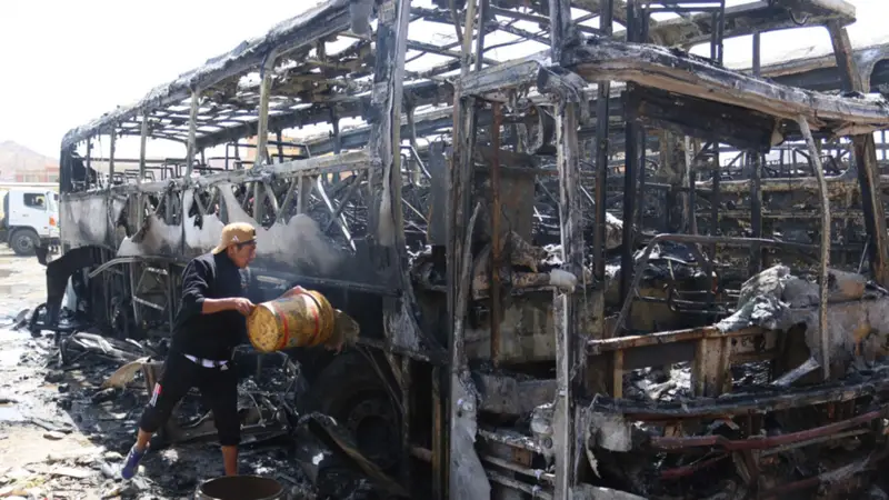La evaluación final del caso fue de cinco buses completamente calcinados, diez bomberos y once civiles afectados por el humo.