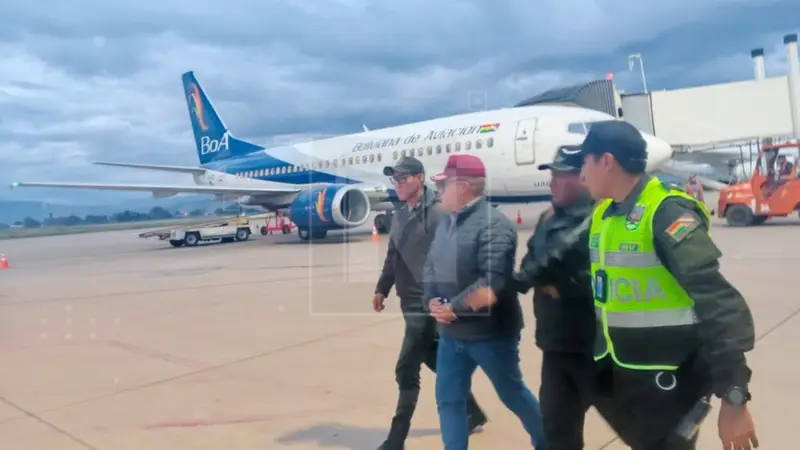 Si bien inicialmente se tenía previsto que el exjefe militar saliera por la puerta número 2 del Aeropuerto Internacional de El Alto, las autoridades determinaron modificar el acceso por motivos de seguridad, realizando su salida por la puerta número 7, donde ya lo aguardaban efectivos policiales.
