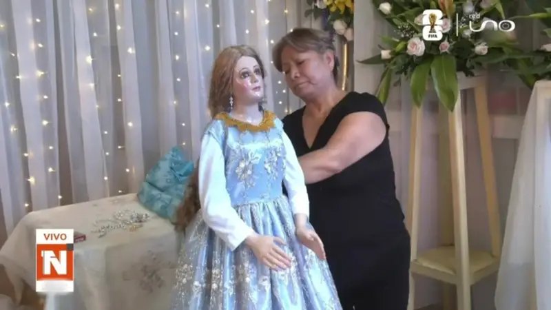 "Estamos preparándola porque hoy es un día especial; es el cumpleaños de nuestra Virgencita. Siempre la festejamos con mariachis y mucha alegría", comentaron emocionadas las comerciantes mientras acomodaban la vestimenta.
