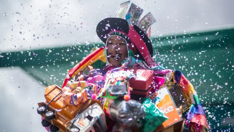 La Alasita, o 'cómprame' en aimara, es una de las tradiciones más antiguas de la cultura andina, cuando los paceños bendicen al mediodía del 24 de enero las miniaturas que representan sus deseos.