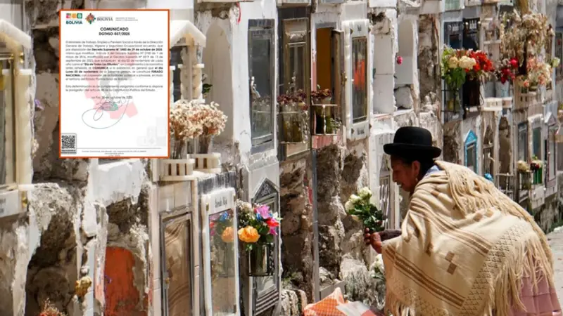 El Ministerio de Trabajo, Empleo y Previsión Social informó que el lunes 3 de noviembre de 2025 será feriado nacional con suspensión de actividades públicas y privadas en todo el territorio del Estado Plurinacional de Bolivia, en conmemoración del Día de Todos los Difuntos.
