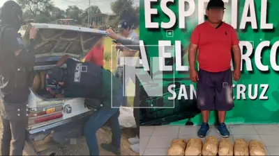 Agentes de la Fuerza Especial de Lucha Contra el Narcotráfico (Felcn) en un operativo de control de carreteras en la provincia de Chiquitos, Santa Cruz, llevaron a cabo la aprehensión de un vehículo taxi de color blanco que levantó sospechas durante una revisión rutinaria.