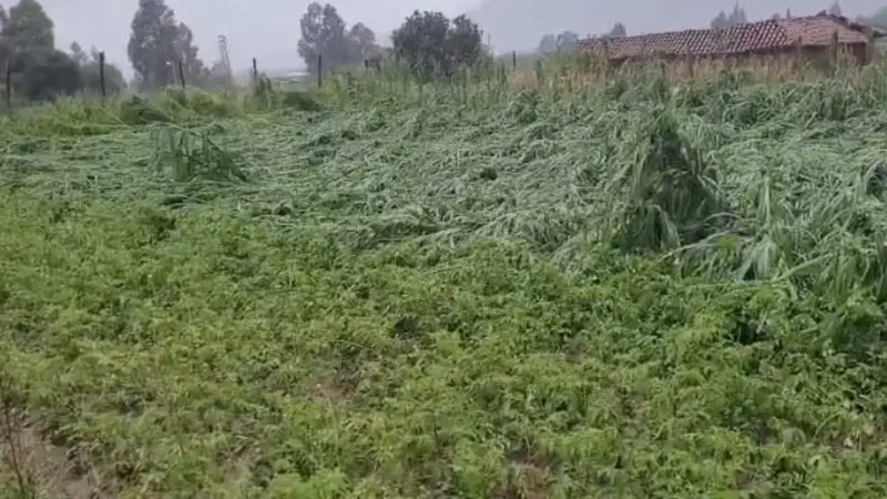Una fuerte granizada acompañada de lluvias causó daños la noche del lunes en cultivos en los municipios de Sipe Sipe y Vinto en el departamento de Cochabamba.