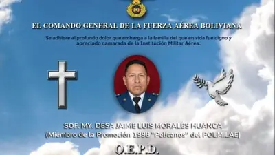 La Fuerza Aérea Boliviana (FAB) expresó su pesar por el fallecimiento del suboficial mayor Jaime Luis Morales Huanca, integrante de la tripulación del avión Hércules C-130 que se accidentó en El Alto.