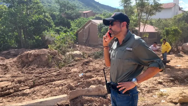 El gobernador de Santa Cruz, Luis Fernando Camacho, se trasladó hasta la comunidad de Achira, en la provincia Florida, para supervisar los trabajos de limpieza y la atención a las familias afectadas por una reciente riada.