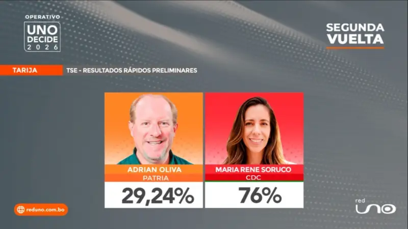 Tras una jornada electoral marcada por la expectativa ciudadana, el departamento de Tarija cerró las urnas en esta segunda vuelta para definir el mando de la Gobernación. Según los primeros reportes del Órgano Electoral Plurinacional (OEP), Maria René Soruco se posiciona a la cabeza de la votación.