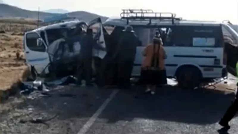 Dos minibuses impactaron de frente, quedando con daños materiales de consideración y afectando a los ocupantes.
