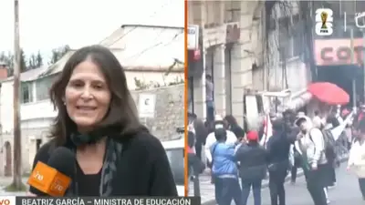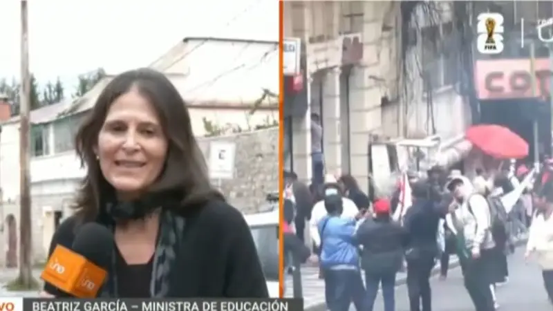 En contacto con medios, la ministra de Educación, Beatriz García, explicó las causas del conflicto.