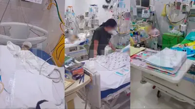 Las imágenes revelan camillas ubicadas una junto a otra, personal médico maniobrando en espacios reducidos y menores conectados a equipos de soporte vital en áreas improvisadas ante la falta de espacio. La emergencia no da tregua y el hacinamiento complica aún más la labor del personal sanitario.