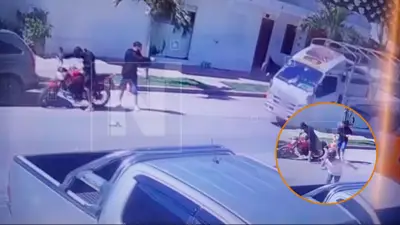 Según las imágenes, los antisociales persiguieron a la víctima mientras esta intentaba escapar. Uno de los delincuentes logró sujetarlo, desestabilizándolo y provocando su caída, mientras que el segundo desenfundó un arma de fuego y apuntó hacia transeúntes para intimidarlos y asegurar su fuga. Tras el robo, ambos delincuentes se dieron a la fuga a bordo de la motocicleta con rumbo desconocido.