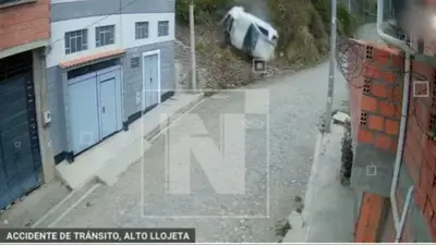 Las cámaras de vigilancia muestran el instante en que un taxi se embarranca cerca de 15 metros, perdiendo el control y cayendo por una pendiente. En la secuencia se observa cómo el chofer sale expulsado por una de las ventanas, impactando violentamente contra el suelo.