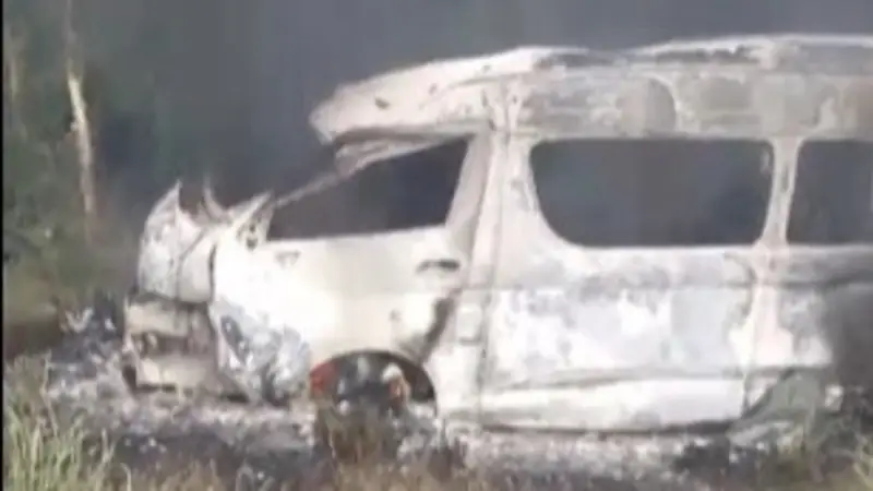 Un minibús de transporte público se incendió tras salirse de la vía en Puerto Pailas.