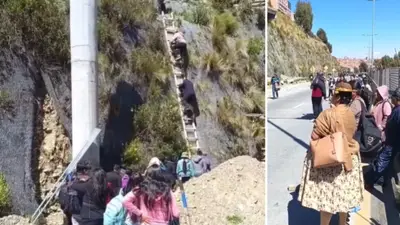 Ante los bloqueos que paralizan las calles de El Alto, ciudadanos improvisaron una escalera de siete metros para sortear un cerco vial y cumplir con sus actividades diarias, un video viral muestra la hazaña.