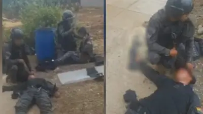 “Mi hijo está en un estado casi de coma, hospitalizado en la Caja. Tiene una herida en la cabeza, su cara está verde, su cuello igual, sus piernas todas maltratadas. ¿Cómo han podido hacerle eso? Lo han tratado como si fuera un delincuente”, relató entre lágrimas el padre del policía, conmocionado por las lesiones que presenta su hijo.