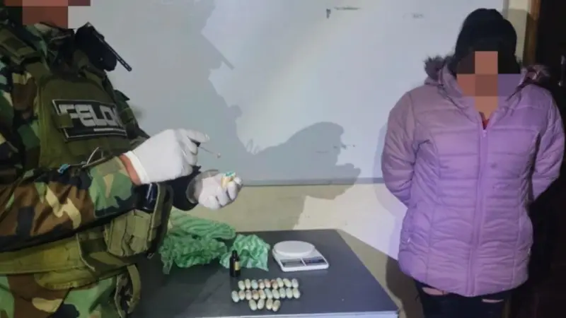 Durante la revisión, se evidenció que la mujer transportaba cápsulas de cocaína adheridas a su cuerpo, además de haber ingerido otras con la intención de trasladarlas hasta la frontera con Chile.