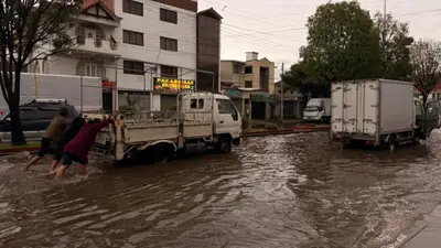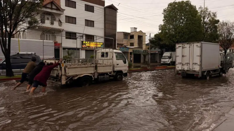 Las intensas lluvias causaron inundaciones y caos vehicular en Cochabamba, con vías anegadas, vehículos varados y dificultades para peatones y transporte público.
