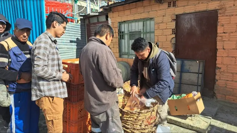 Brayan Aguilar, un joven emprendedor, vende cada mañana 1.200 panes a 0,50 centavos frente a la Subalcaldía Max Paredes, apoyando a los vecinos ante la subida del precio del pan de batalla.