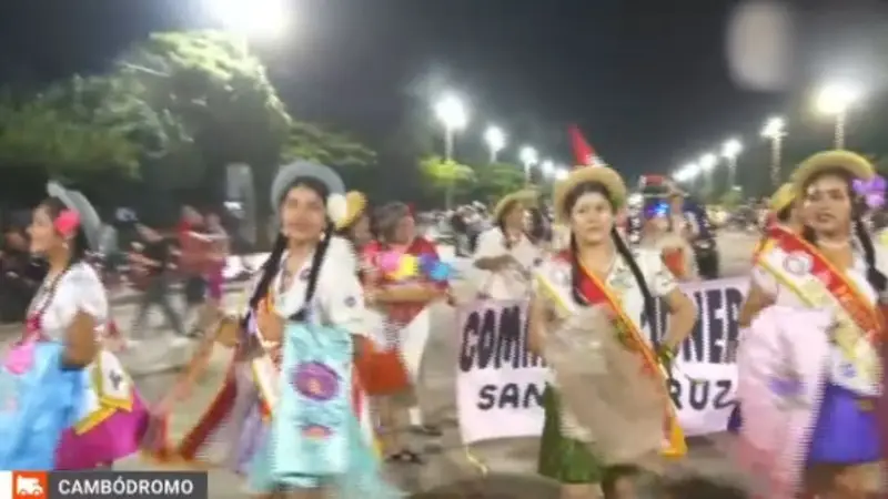 El Cambódromo se transformó en un escenario de color y tradición con la masiva presencia de los residentes de Tarija que celebraron el Jueves de Comadres. Las mujeres, vestidas con sus mantas y polleras típicas, llenaron el recorrido con la alegría de la rueda chapaca y el eco de los tradicionales ‘aros aros’.
