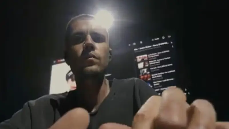 Durante varios momentos del concierto, el artista utilizó su computadora para buscar videos en YouTube y reproducir sus propias canciones, sobre las que luego cantaba en vivo, en una dinámica que muchos compararon con un karaoke.