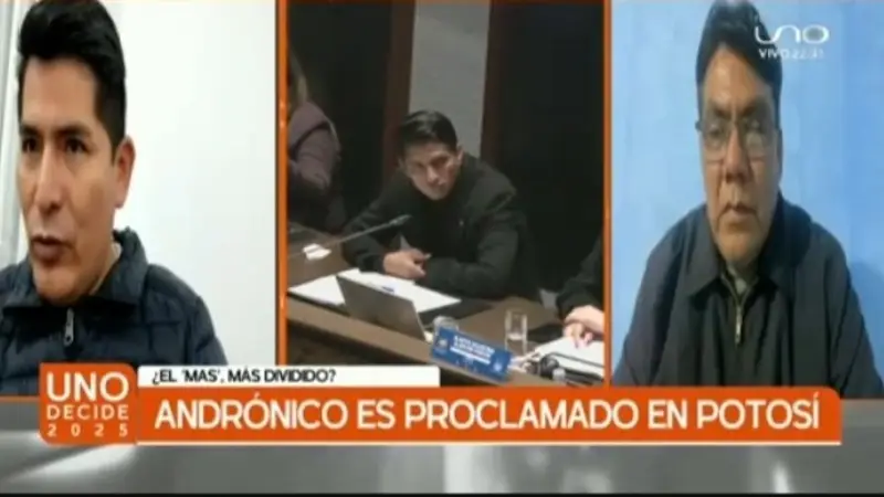 Un singular debate se realizó en UNO DECIDE durante el programa Que No Me Pierda (QNMP) entre el diputado evista Héctor Arce y el senador del MAS, Pedro Benjamín Vargas, a raíz la reciente proclamación de Andrónico Rodríguez en Potosí, pues si bien, los ‘androniquistas’ lo señalan como el único líder capaz de lograr la unidad, el diputado evista la calificó como un hecho aislado, desacreditando la proclamación por no ser realizada de manera orgánica.