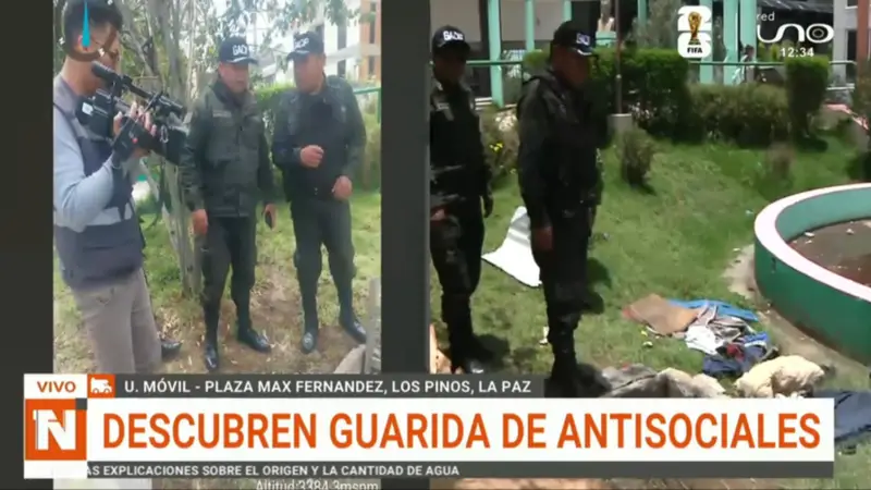 Personal del Grupo de Apoyo Civil a la Policía (Gacip) intervino una cámara de desagüe que era utilizada como refugio por presuntos antisociales y personas en estado de ebriedad, en inmediaciones de la plaza Max Fernández, de la calle 23 de Calacoto de la ciudad de La Paz, a pocos pasos de la unidad educativa Los Pinos.