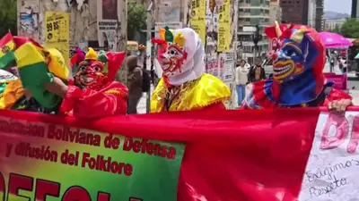 Las autoridades municipales de La Paz, representantes del folclore de Bolivia y un grupo de danzarines reivindicaron este lunes, en una manifestación, al icónico personaje del Pepino, uno de los más representativos del carnaval paceño, ante la supuesta "apropiación" de esta figura en una festividad religiosa en Puno (Perú).