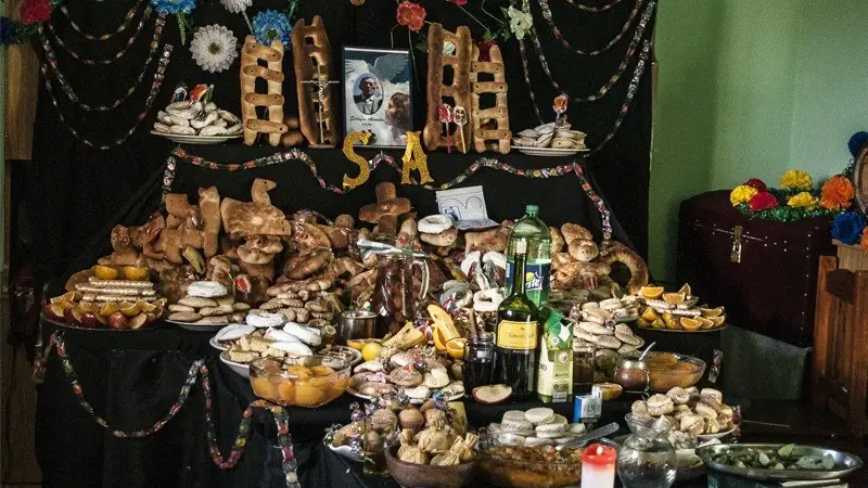Entre el 1 y 2 de noviembre, las familias bolivianas preparan mesas con pan, flores y comida para recibir a las almas de sus seres queridos.
