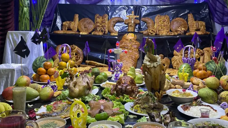 A mediodía, si las masas y dulces no son llevadas al cementerio, habrá que "p"unkur" (volcar) la mesa en la misma casa por un número convenido de estaciones. No debe quedar nada. Hay que despedir al alma con toda la generosidad posible.