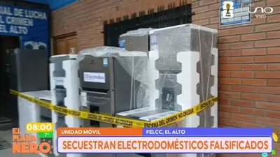 La Fuerza Especial de Lucha Contra el Crimen (Felcc) de El Alto secuestró este jueves 12 electrodomésticos presuntamente falsificados y aprehendió a cinco personas durante un operativo realizado en la zona de Villa Dolores, tras la denuncia de una empresa importadora de productos de línea blanca.