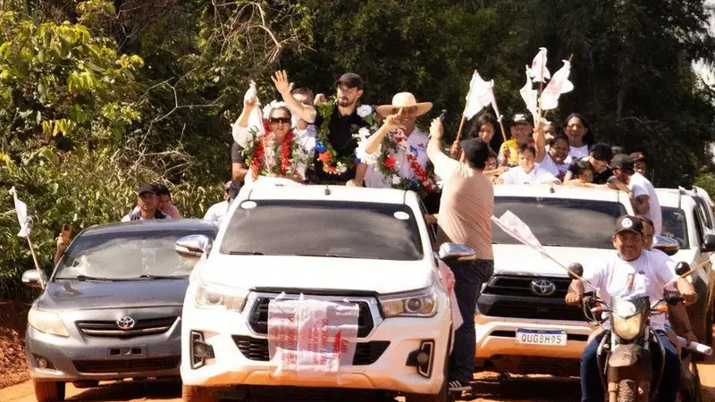 Juan Pablo 'JP' Velasco, candidato a la Gobernación de Santa Cruz por la Alianza Libre, estuvo en el municipio de San Matías, en la provincia Ángel Sandoval, donde fue recibido por una multitud de vecinos y simpatizantes en un acto lleno de caravanas y banderas.
