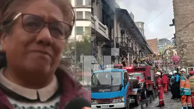 En medio del dolor, una de las comerciantes afirmó que lo perdieron todo en el incendio. Son al menos 32 tiendas afectadas por las llamas, que continúan activas en el inmueble de la calle Sagárnaga.