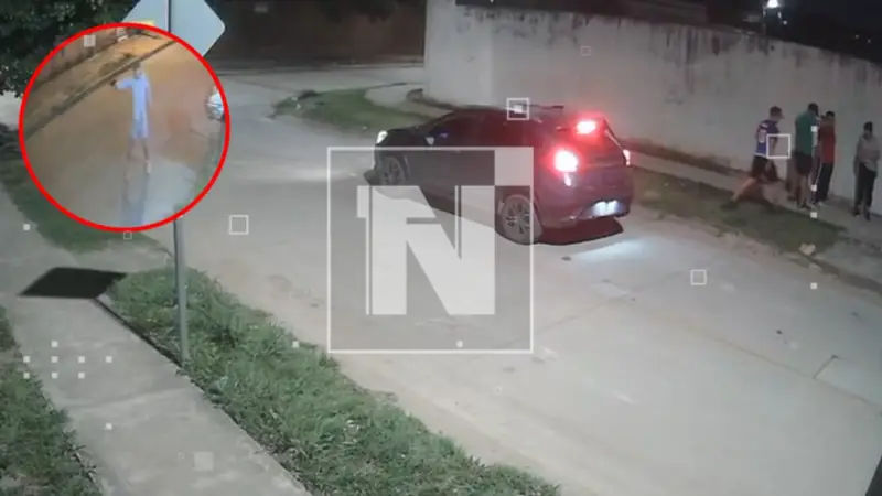 La urbanización España, en la zona sur de Santa Cruz, fue escenario de un violento asalto registrado en video, donde una pareja que caminaba tranquilamente fue interceptada por dos delincuentes armados. Uno de los atacantes apuntó con un arma a un hombre, mientras su cómplice lo acorralaba para arrebatarle sus pertenencias.