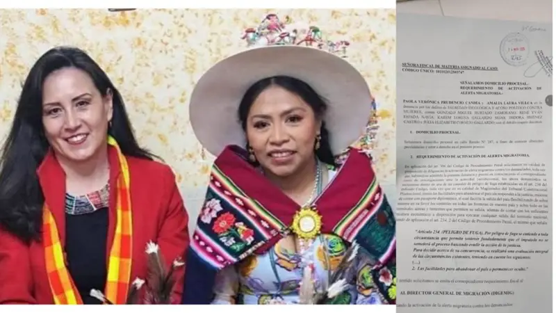 Las magistradas electas del Tribunal Constitucional Plurinacional (TCP), Paola Verónica Prudencio y María Laura Villca, presentaron ante la Fiscalía Departamental de Chuquisaca una solicitud para activar alerta migratoria contra los cinco magistrados denominados “autoprorrogados”, quienes actualmente enfrentan una denuncia penal.