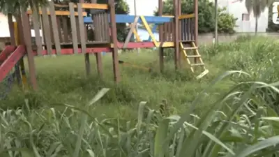 En la plazuela del barrio, los pastizales superan la altura de una persona y los juegos infantiles presentan un evidente deterioro. Los vecinos aseguran que la situación no es reciente y que el descuido se mantiene desde hace tiempo sin que se ejecuten trabajos de limpieza o refacción.