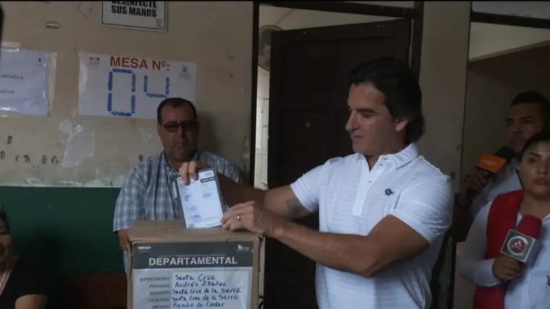 El alcalde electo de Santa Cruz de la Sierra, Manuel Saavedra, llegó la mañana de este domingo hasta la unidad educativa Basilio de Cuéllar para emitir su voto en la jornada electoral departamental.
