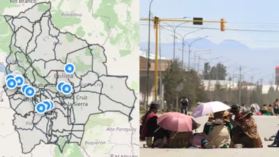 La Administradora Boliviana de Carreteras reporta 18 puntos de bloqueo en los departamentos de La Paz, Santa Cruz, Oruro y Cochabamba, situación que afecta la transitabilidad en las principales rutas del país