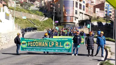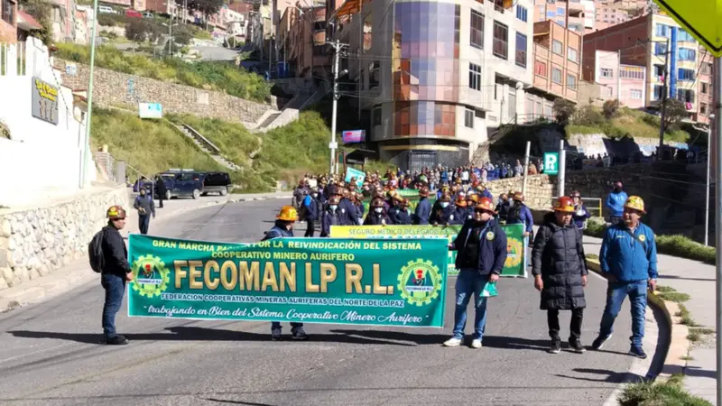 En una nueva jornada de movilización social, cientos de cooperativistas auríferos afiliados a la Federación de Cooperativas Mineras Auríferas del Norte de La Paz (FECOMAN) iniciaron una marcha que partió desde la ciudad de El Alto rumbo al centro de La Paz, en demanda del cumplimiento de compromisos asumidos por el Gobierno nacional con el sector minero cooperativizado entre sus demandas esta la provisión de combustibles.
