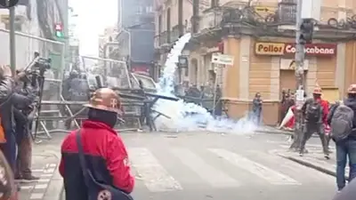 La movilización de la Central Obrera Boliviana (COB) llegó hasta inmediaciones de la sede de Gobierno en rechazo al Decreto Supremo 5503. Se reportaron enfrentamientos y uso de agentes químicos.
