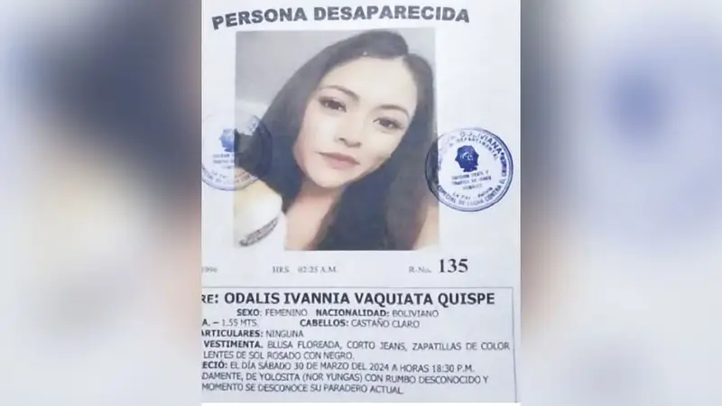 La desaparición de Odalys ocurrió el 30 de marzo de 2024, tras un viaje a Tocaña, en el departamento de La Paz.