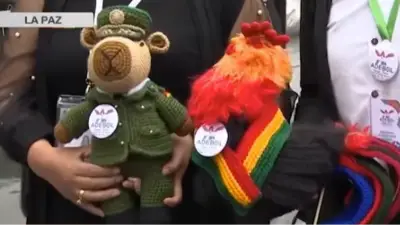 Karen Callisaya, microempresaria de Adebol, presentó en la Plaza Murillo amigurumis personalizados para celebrar la posesión del presidente Rodrigo Paz y del vicepresidente Edmand Lara.