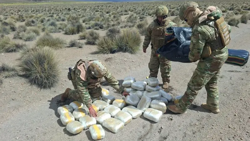 La institución indicó este domingo en un comunicado que la droga fue encontrada el viernes a 900 metros del Puesto Militar Adelantado Severino Zapata, en el parque nacional Sajama, en el departamento de Oruro (oeste).