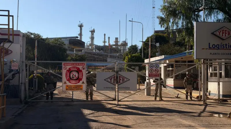 La refinería Gualberto Villarroel, ubicada en la avenida Petrolera km 6½ de Cochabamba, amaneció este lunes bajo fuerte resguardo policial y militar, en medio de las investigaciones por la presunta mala calidad de la gasolina que generó protestas del transporte libre.