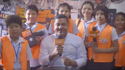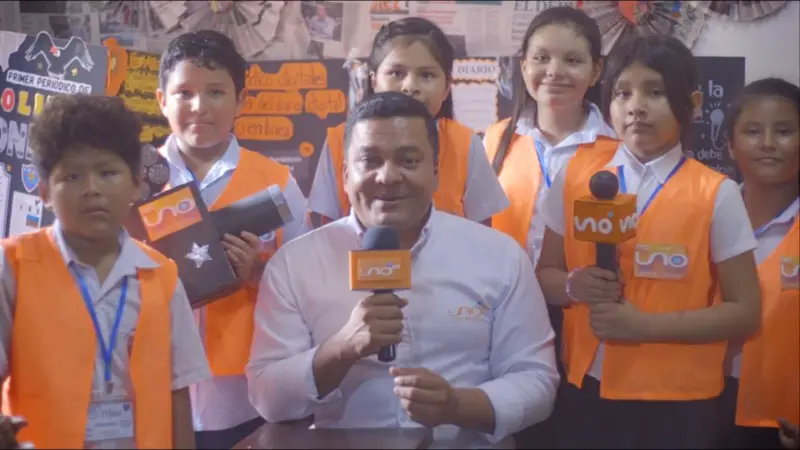 “Estamos transmitiendo en vivo para la Red Uno desde la Feria Tecnológica”, concluyó una de las miniperiodistas, simulando un pase en vivo mientras sostenía orgullosa su micrófono artesanal.