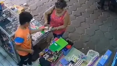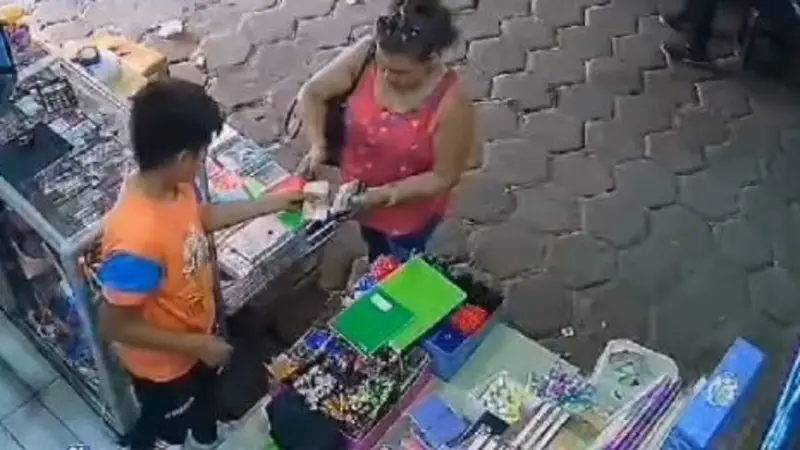 Posteriormente, se desanima de comprar los cuadernos confundiendo al niño, y pide la devolución de su billete, pero finalmente después de cambiar el billete falso se guarda el cambio y se lleva los dos cuadernos. La acción delincuencial ya circula en redes sociales y ha recibido un sin fin de críticas hacia la mujer.