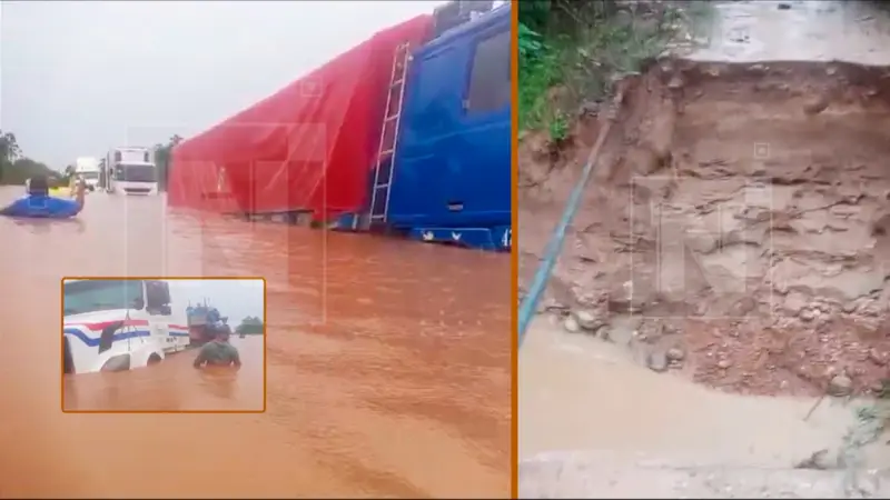 “Necesitan auxilio, está hondo, al motor ya le entró agua, si funcionará el camión no”, relató un hombre que registró uno de los videos. En otra grabación, se escucha: “Está fuerte la corriente, me está jalando”, mientras se observa la desesperación por la carga afectada.
