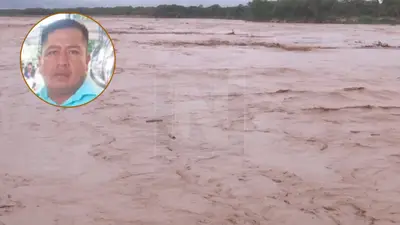 Madre clama ayuda tras tres días de búsqueda de pescador arrastrado por la riada. FOTO: NTV/RED UNO. Montaje CHMF.