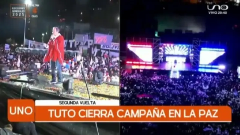 El candidato presidencial de Alianza Libre, Jorge Tuto Quiroga, realizó su cierre de campaña en La Paz. En la concentración, el presidenciable apeló a sus seguidores a promover el voto por Libre e instó a los indecisos a realizar un cambio por el futuro del país.