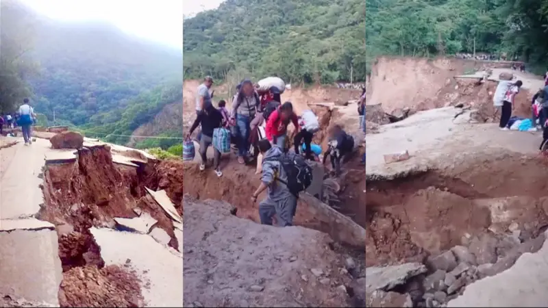 Ante la falta de paso vehicular, algunas personas optaron por cruzar a pie, exponiéndose a un alto riesgo. En videos que llegaron a la mesa de redacción de Red Uno Digital se observa a pasajeros atravesando el deslizamiento cargados con maletas, incluso con niños, avanzando con extrema precaución sobre una plataforma inestable y erosionada por las lluvias.